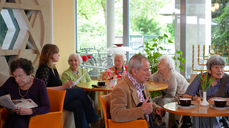 Sina Zagrebelsky, Pflegedienstleitung, die seit über 25 Jahren im Haus ist, begleitet mit ihrem Team die Bewohnerinnen und Bewohner am Lebensende palliativ. Unterstützt werden die Mitarbeitenden durch das PCT Düsseldorf und einen ehrenamtlichen Hospizdienst. Derzeit werden Mitarbeiterinnen palliativ weiter gebildet, um eine palliative Begleitung unter besonderer Berücksichtigung des jüdischen Kontextes zu gewährleisten.